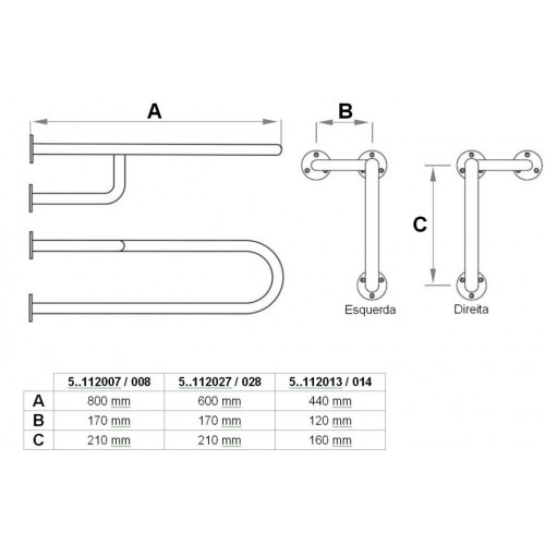 Barra Apoio Sanita/Lavatório Aço Inox Direita/Esquerda
